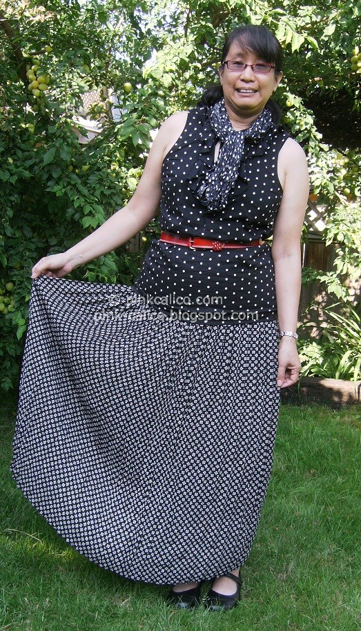 Not sure if this look is a bit too busy in the front but I like the self-belt on the skirt - it covers all sorts of unsightly bulges.